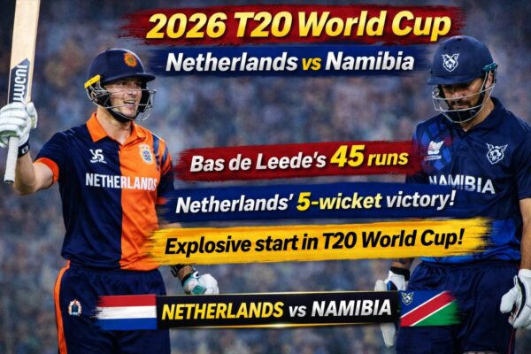 Netherlands vs Namibia T20 World Cup 2026 में नीदरलैंड्स ने 5 विकेट से जीत दर्ज की। डि लीडे ने 45 रन बनाए, जिससे टीम को टूर्नामेंट में शानदार शुरुआत मिली। Netherlands vs Namibia T20 World Cup: 2026 T20 विश्व कप में नीदरलैंड्स ने अपने पहले मैच में नामीबिया को 5 विकेट से हराकर टूर्नामेंट की…