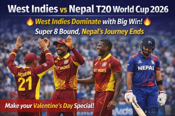 West Indies vs Nepal T20 World Cup 2026 में वेस्टइंडीज ने नेपाल को 9 विकेट से हराकर सुपर 8 में जगह बनाई। नेपाल का विश्व कप सफर समाप्त हुआ। West Indies vs Nepal T20 World Cup 2026 के तहत ग्रुप C का मुकाबला मुंबई के वानखेड़े स्टेडियम में खेला गया। वेस्टइंडीज ने टॉस जीतकर पहले…