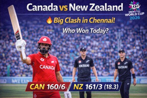 Canada vs New Zealand T20 World Cup 2026: न्यूज़ीलैंड ने 7 विकेट से जीत दर्ज की। जानें मैच के प्रमुख मोमेंट्स और खिलाड़ियों का प्रदर्शन। ICC Men’s T20 World Cup 2026 के ग्रुप D के 31वें मैच में न्यूज़ीलैंड ने कनाडा को 7 विकेट से हराकर सुपर आठ में अपनी जगह मजबूत की। चेन्नई के…