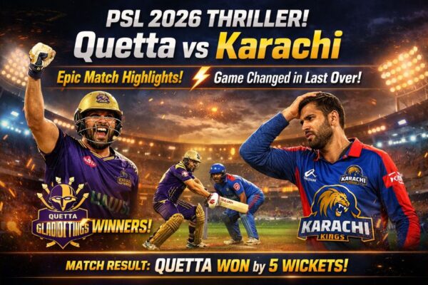 PSL 2026 Match Result में Quetta vs Karachi मुकाबले का पूरा अपडेट जानिए। किसने जीता मैच, कौन रहा हीरो और क्या रहे अहम मोमेंट्स। Pakistan Super League (PSL) 2026 का रोमांच अपने चरम पर है और दूसरे मुकाबले में Quetta Gladiators और Karachi Kings के बीच जबरदस्त भिड़ंत देखने को मिली। इस मुकाबले का “PSL…