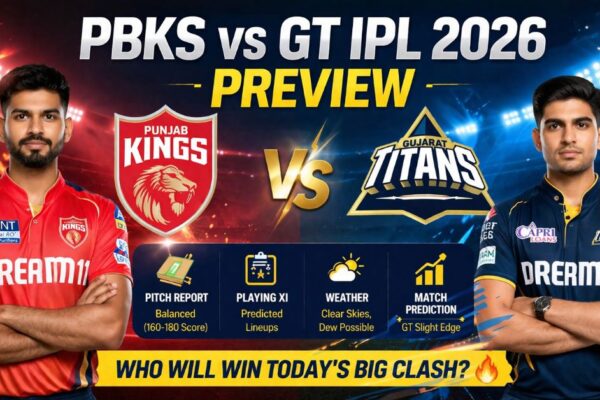 PBKS vs GT IPL 2026 Preview में जानें पिच रिपोर्ट, प्लेइंग XI, मौसम और मैच भविष्यवाणी। कौन जीतेगा यह हाई-वोल्टेज मुकाबला? PBKS vs GT IPL 2026 Preview के तहत इंडियन प्रीमियर लीग के इस अहम मुकाबले को लेकर क्रिकेट प्रेमियों में खासा उत्साह देखने को मिल रहा है। पंजाब किंग्स (PBKS) और गुजरात टाइटंस (GT)…